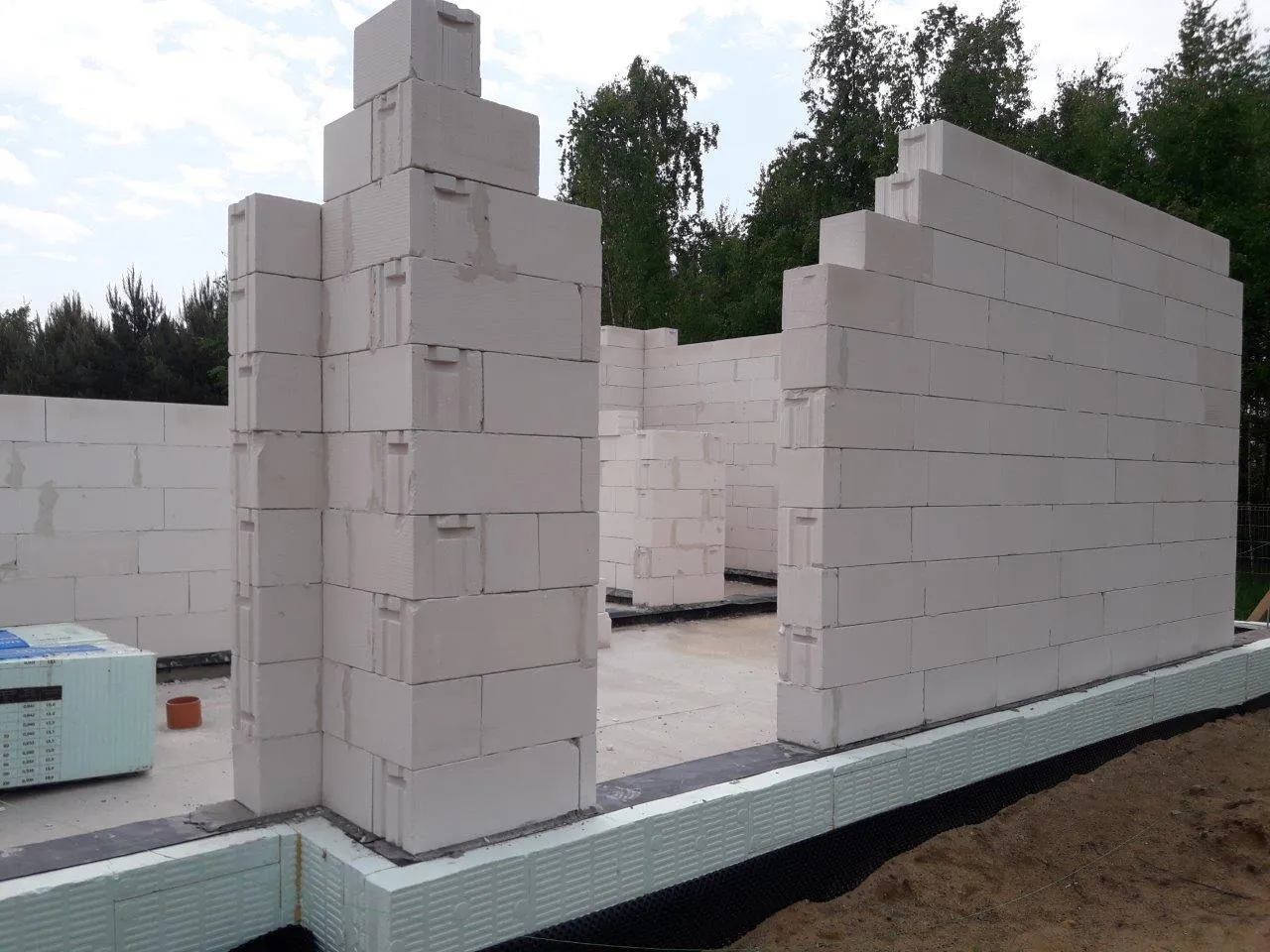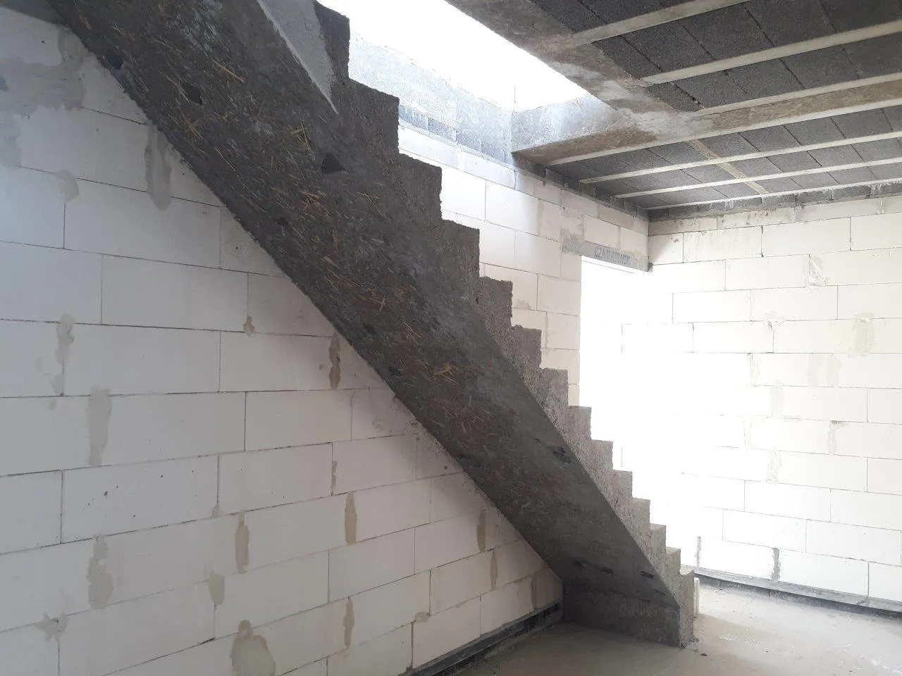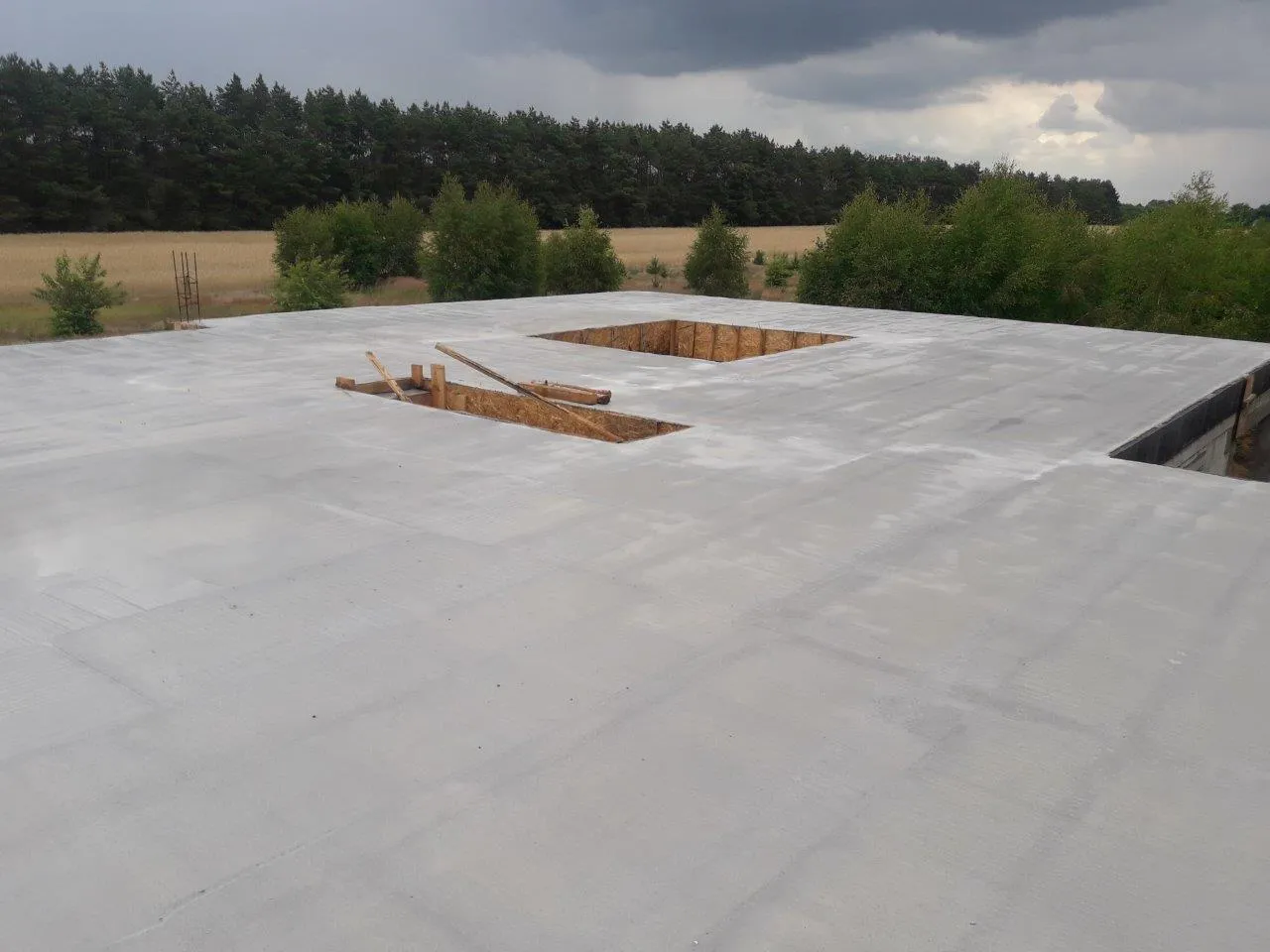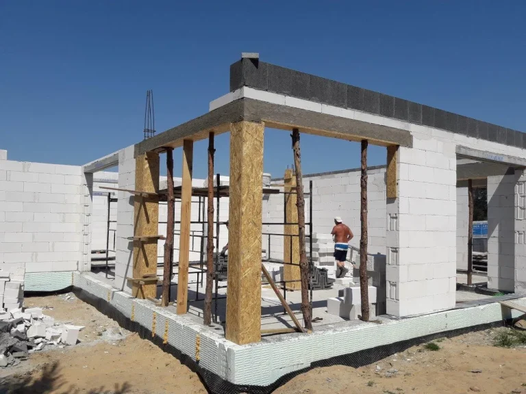Our next construction is a house of 228 square meters. The building was founded on footings. The foundation walls were built according to the project from Czamaninek expanded clay blocks. Load-bearing walls with a thickness of 24 cm and partition walls (12 cm) were made of H+H Gold+ cellular concrete blocks. A Teriva Base goose ribbed ceiling was used over the first floor, while a wooden ceiling was used over the first floor.