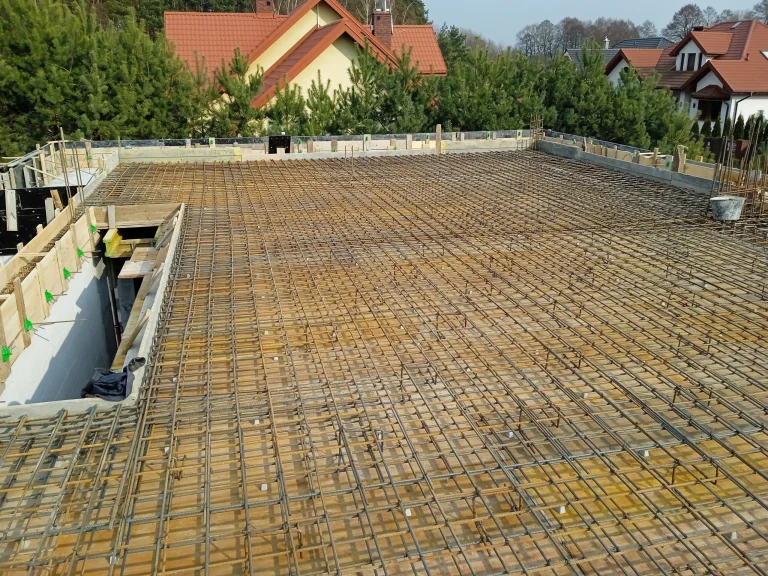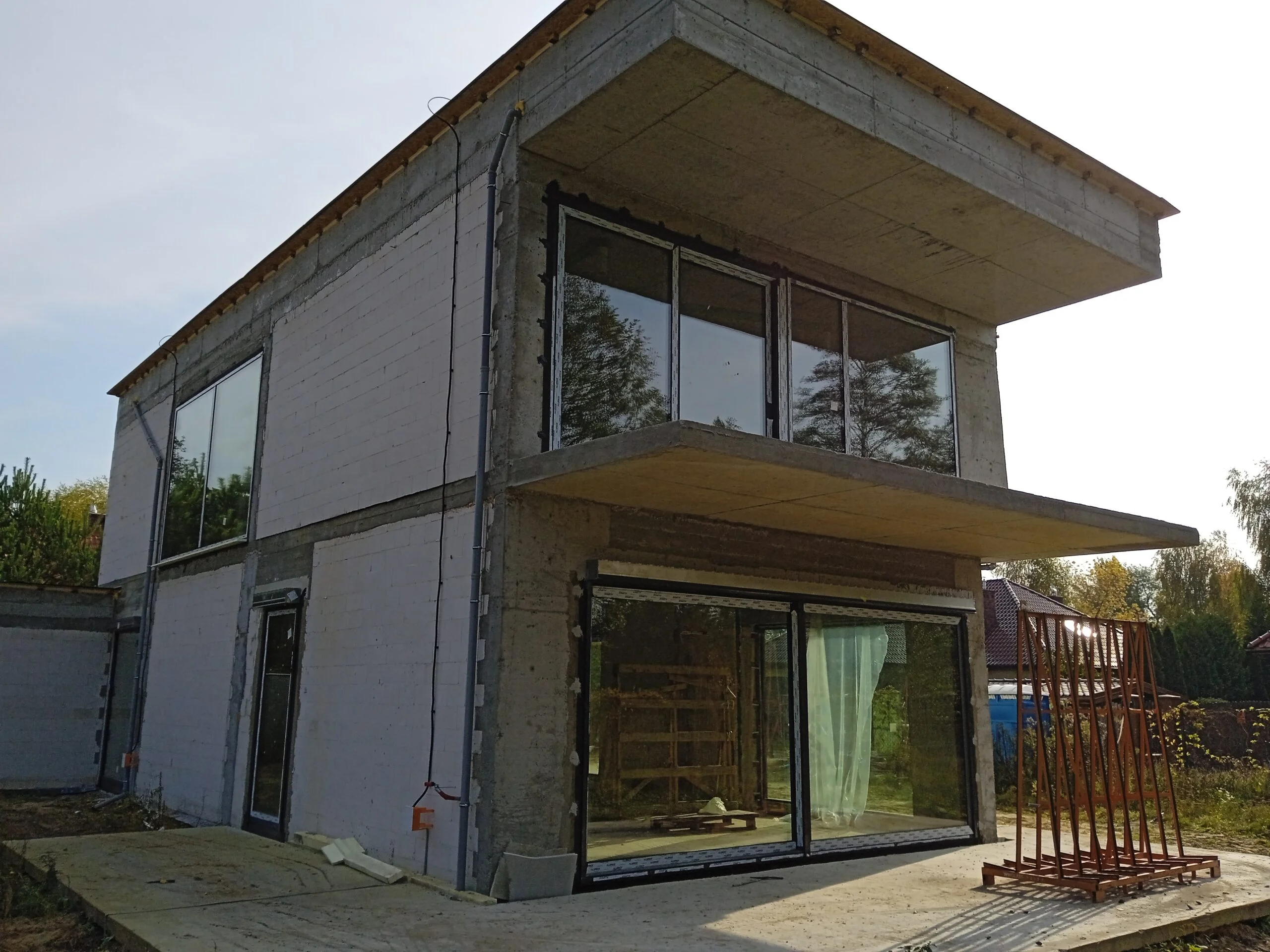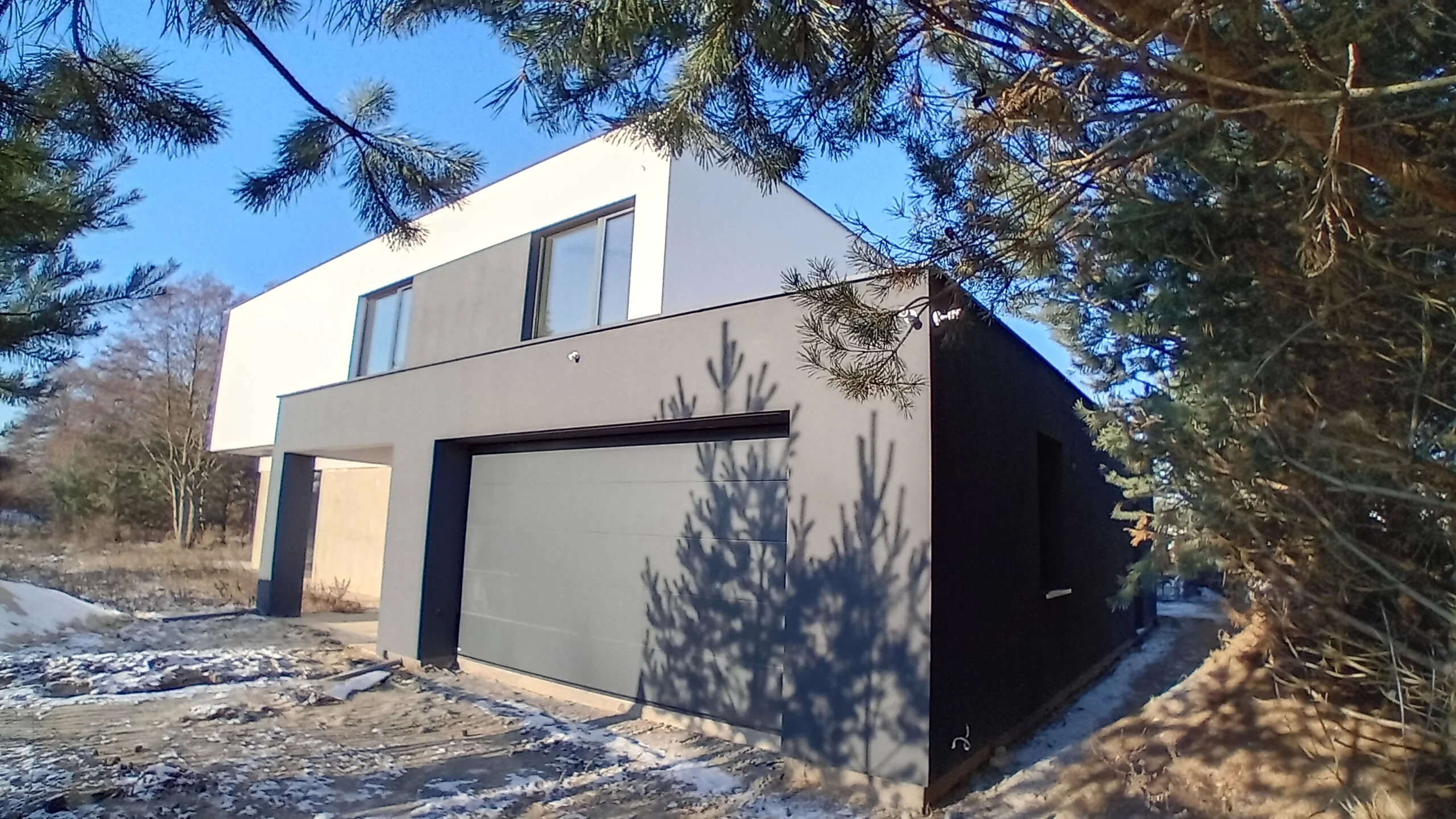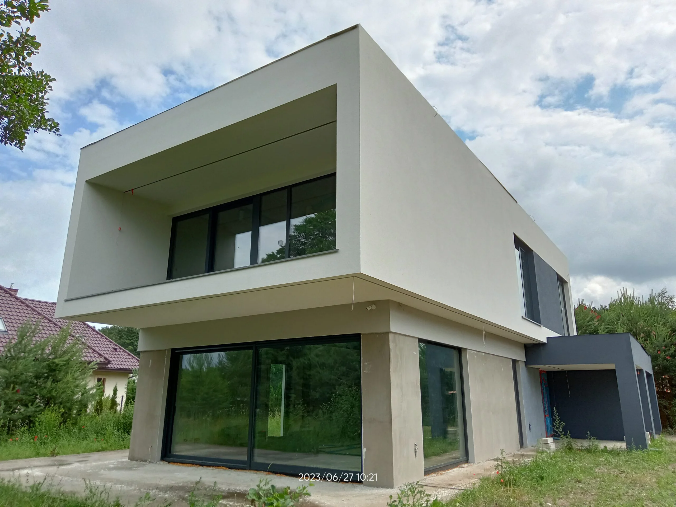 The 221 m2 house was erected on a reinforced foundation slab along with 15cm thick thermal insulation. Bearing and partition walls were made of silicate blocks with a thickness of 25cm and 12cm respectively. Monolithic ceiling. The roof of the building is flat.