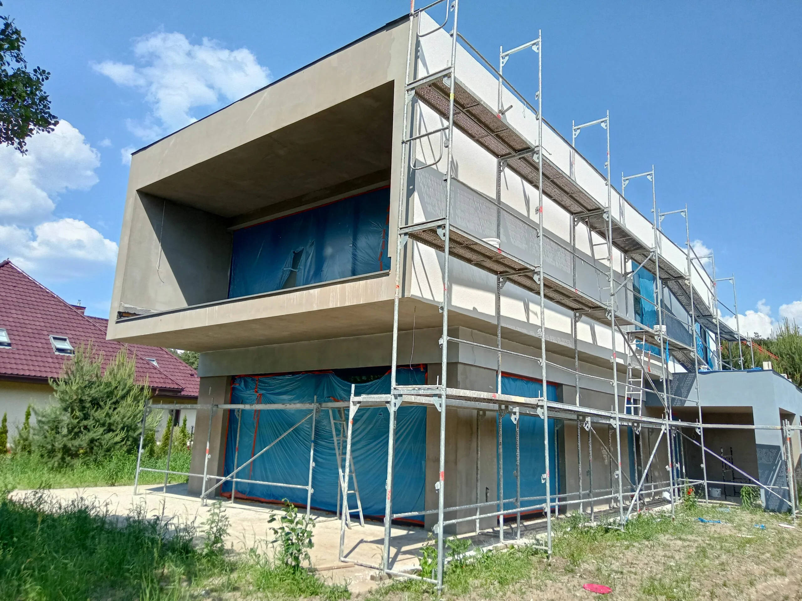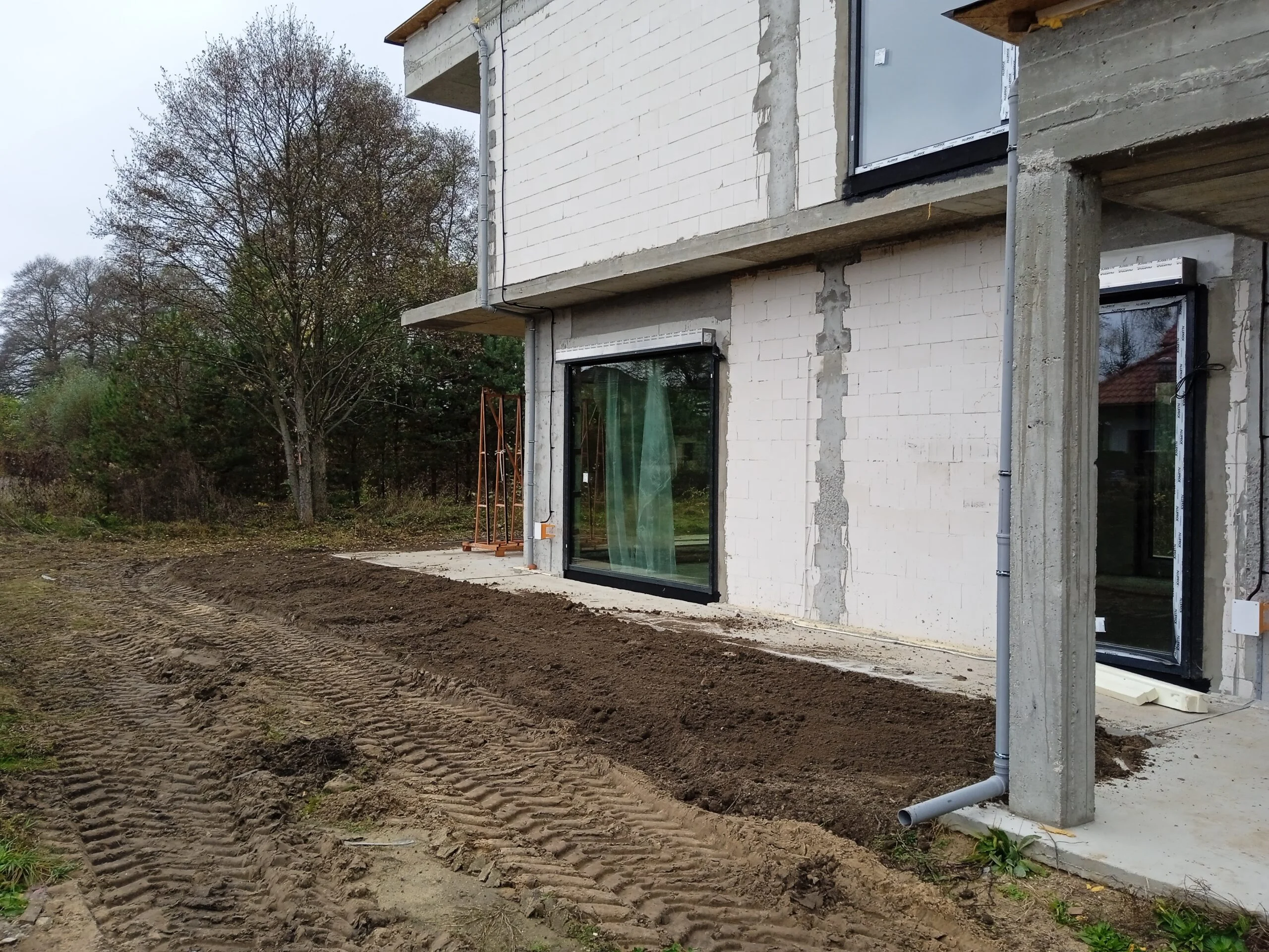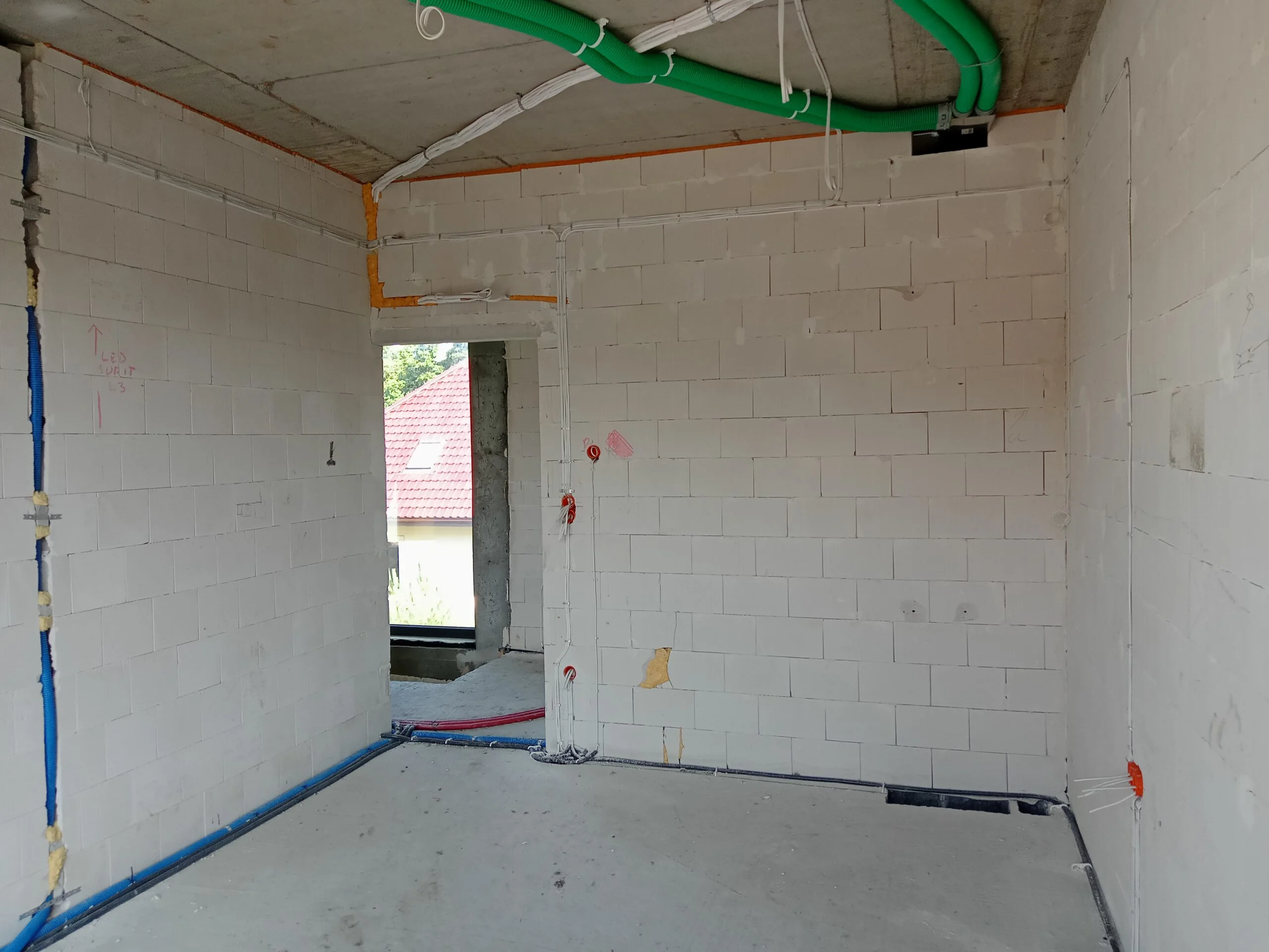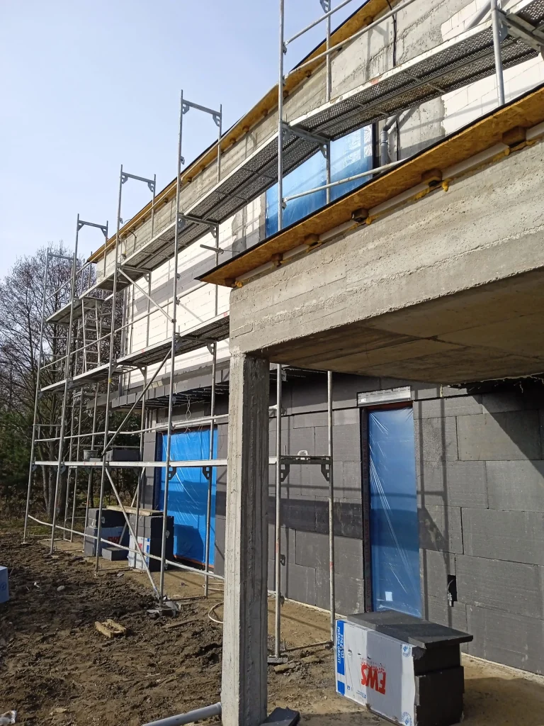 In the building, the installation of electric flush-mounted roller shutters with a drive and the warm installation of windows with the use of vapor-proof tapes, warm sills made of XPS and clinarite foundations was carried out. The house was equipped with electrical, telecommunications, plumbing, recuperation and air heat pump installation. A conduit for photovoltaic installation, air-conditioning installation and monitoring was also made.