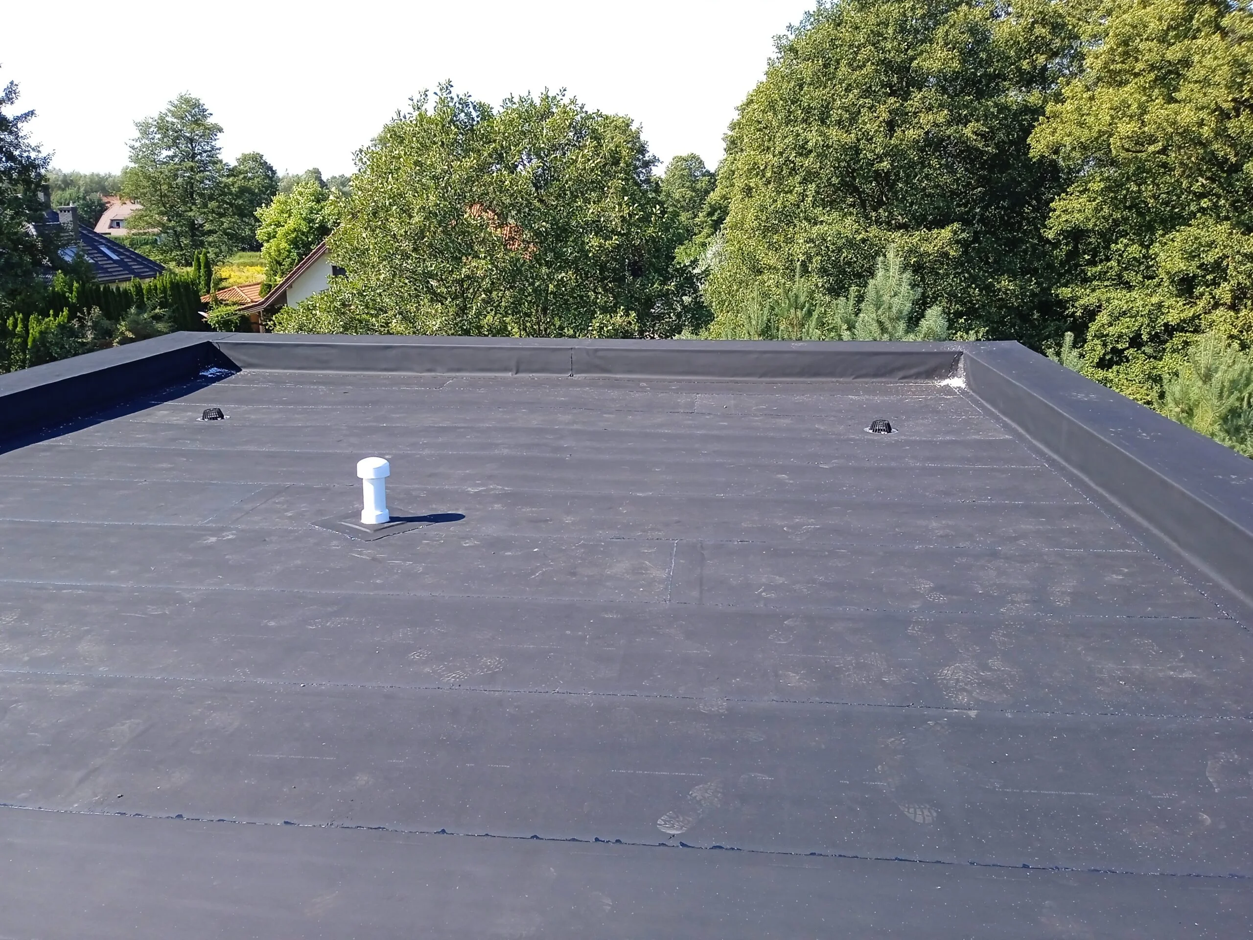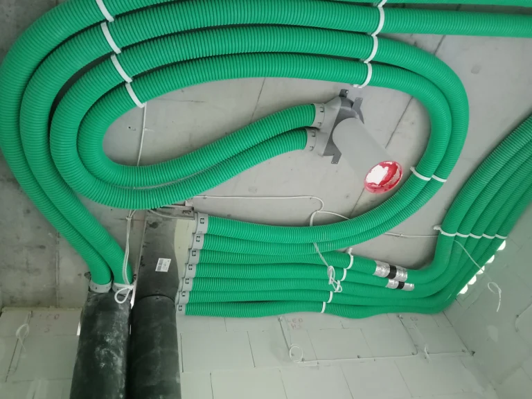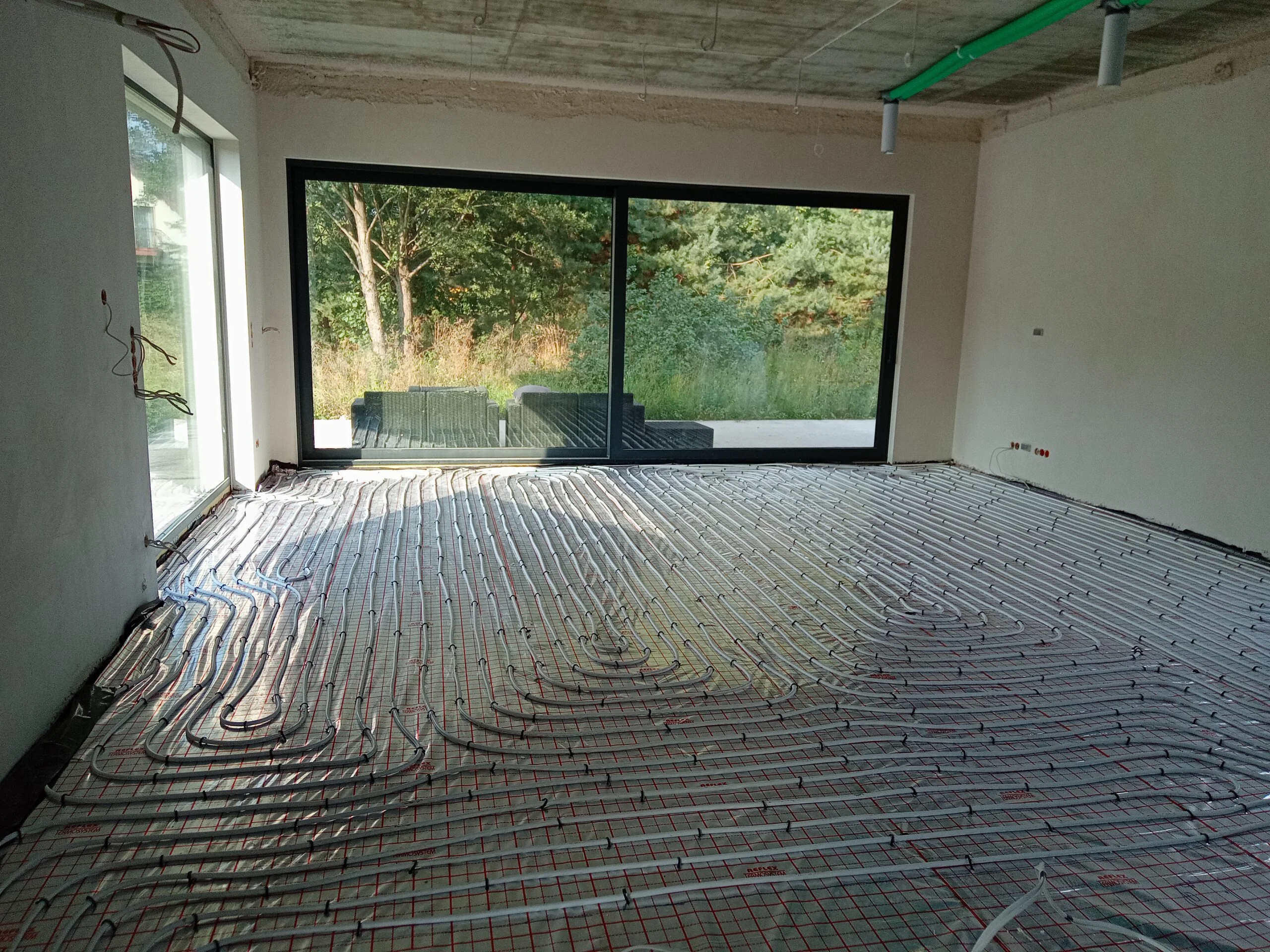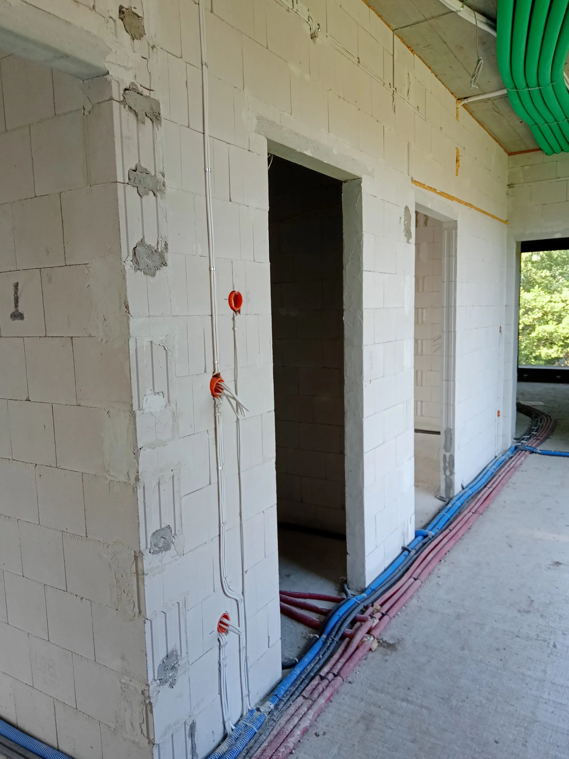 In the building, the installation of electric flush-mounted roller shutters with a drive and the warm installation of windows with the use of vapor-proof tapes, warm sills made of XPS and clinarite foundations was carried out. The house was equipped with electrical, telecommunications, plumbing, recuperation and air heat pump installation. A conduit for photovoltaic installation, air-conditioning installation and monitoring was also made.
