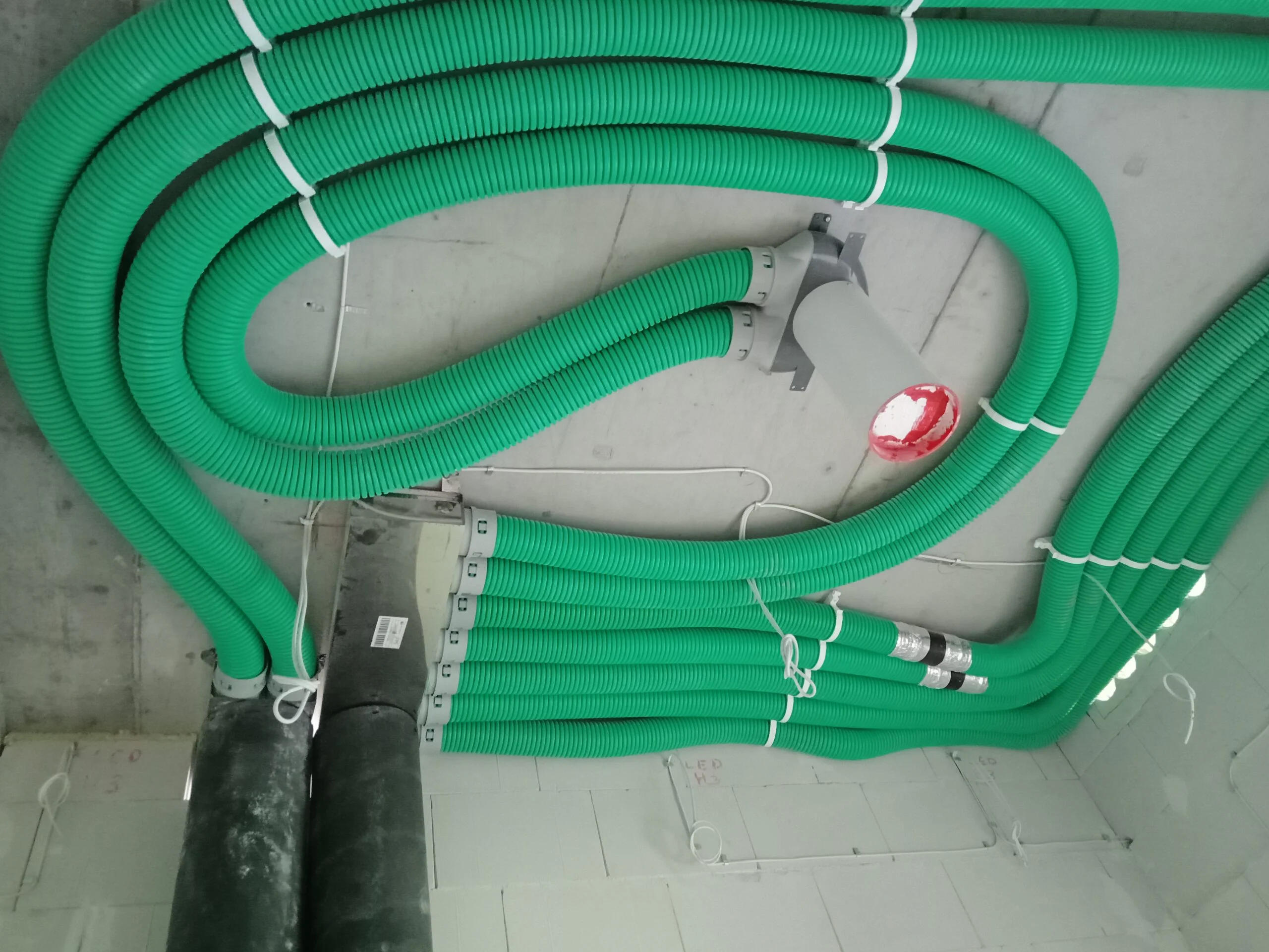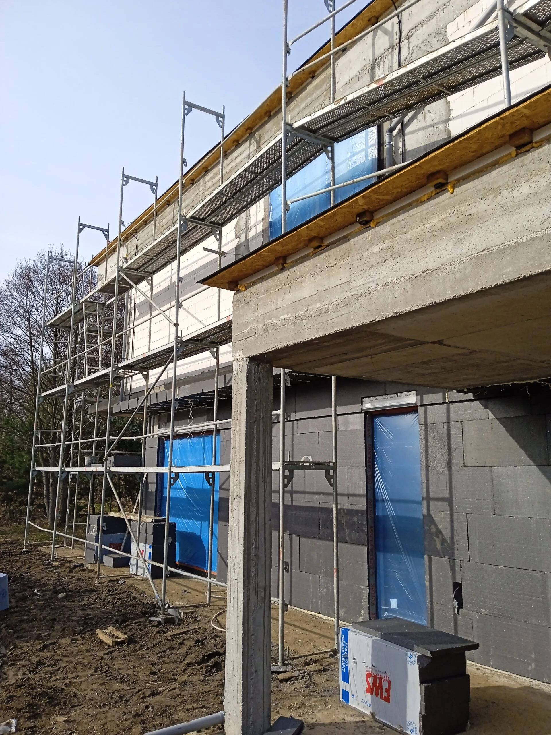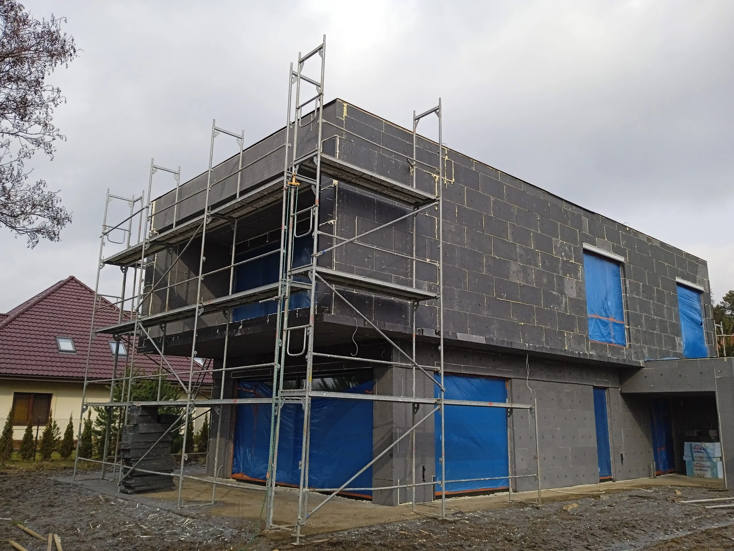 20 cm thick graphite polystyrene foam was used to insulate the exterior walls, and the building was finished with white silicone plaster.
