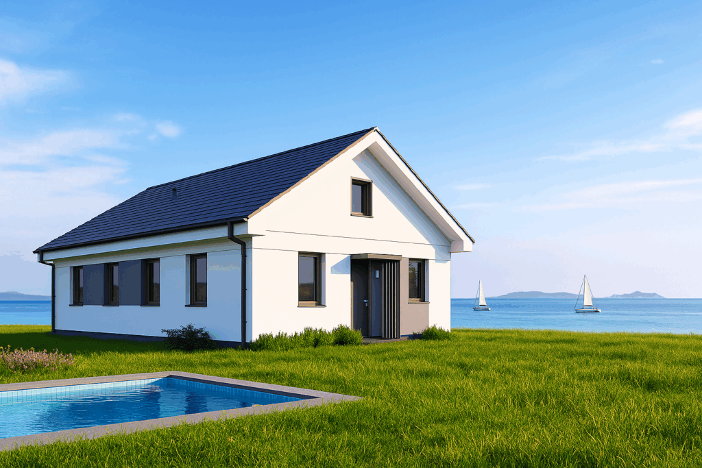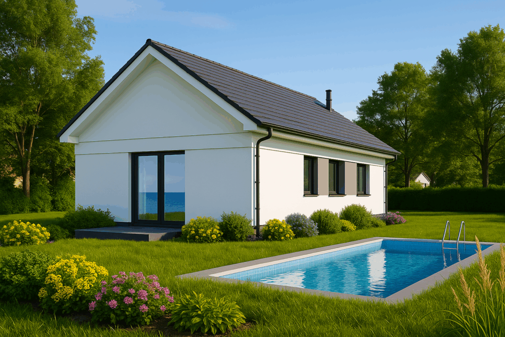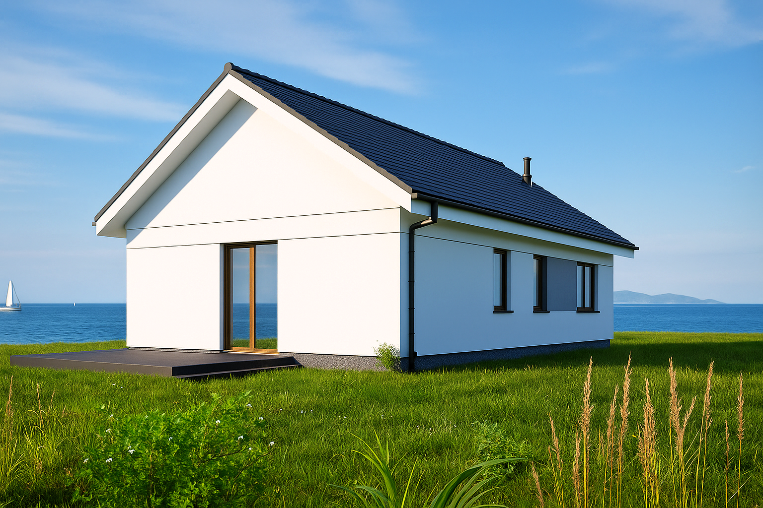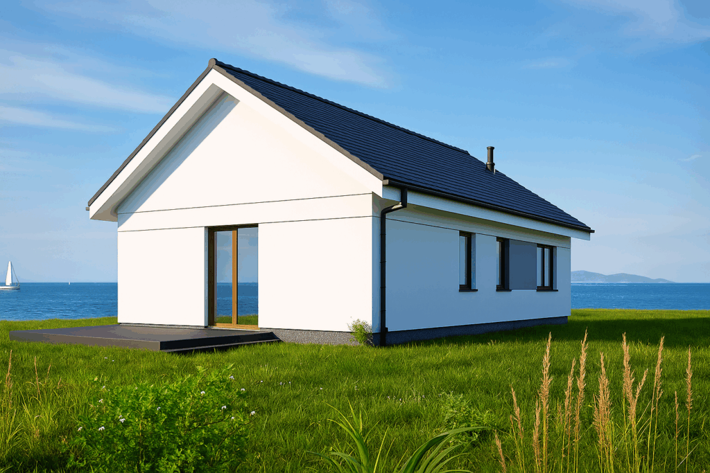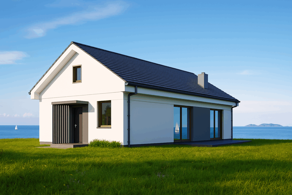 High‑performance insulation, double glazing and a sleek chimney promise year‑round comfort with minimal energy costs.