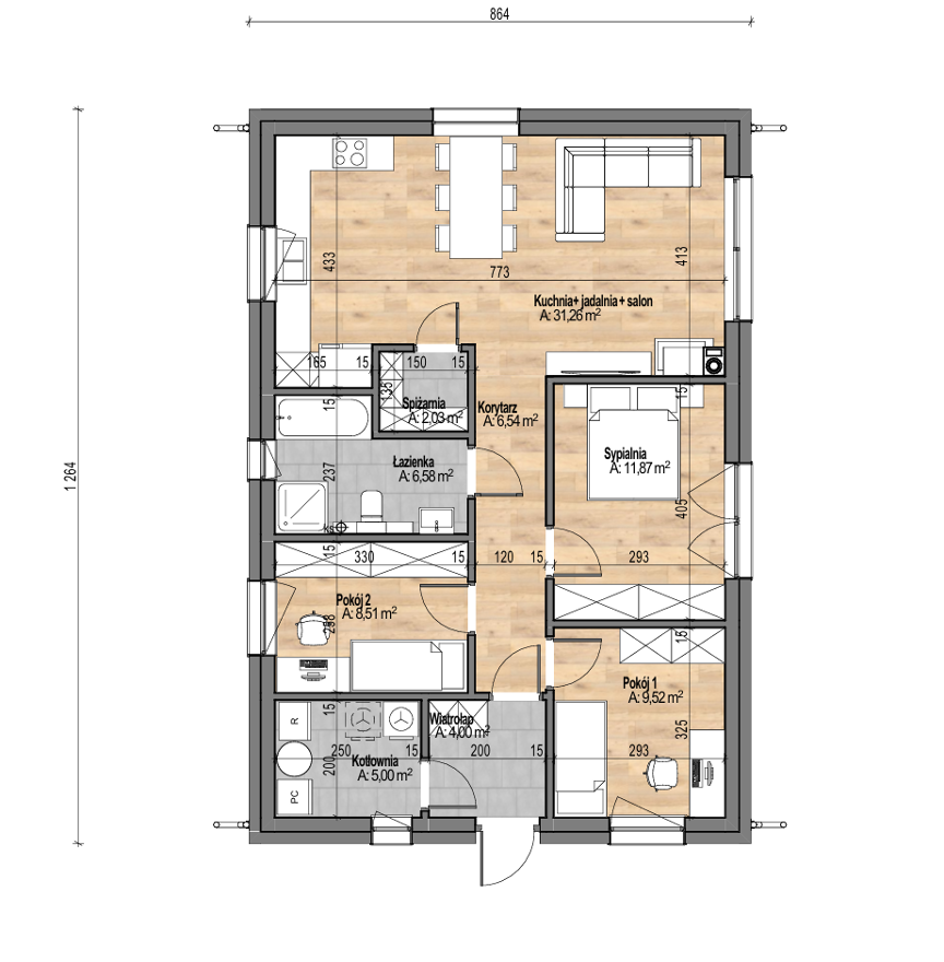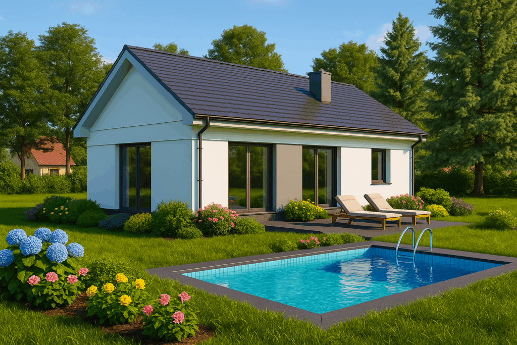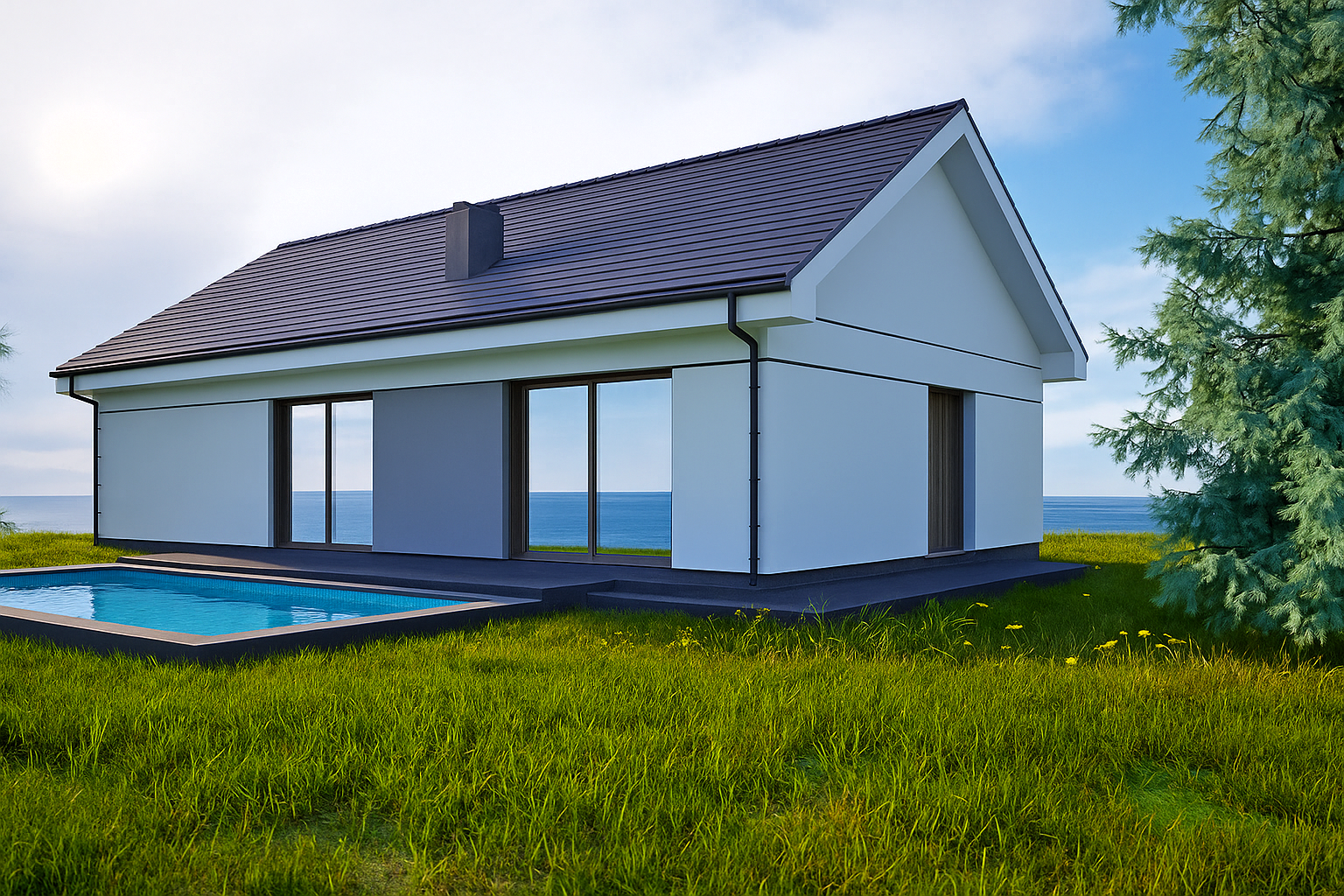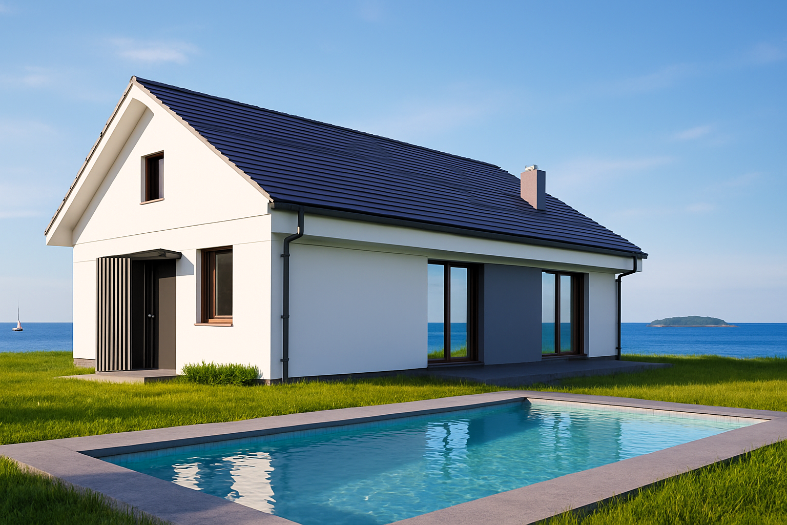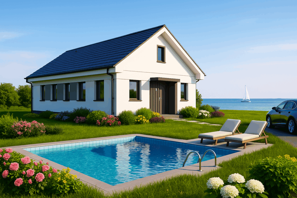 High‑performance insulation, double glazing and a sleek chimney promise year‑round comfort with minimal energy costs.