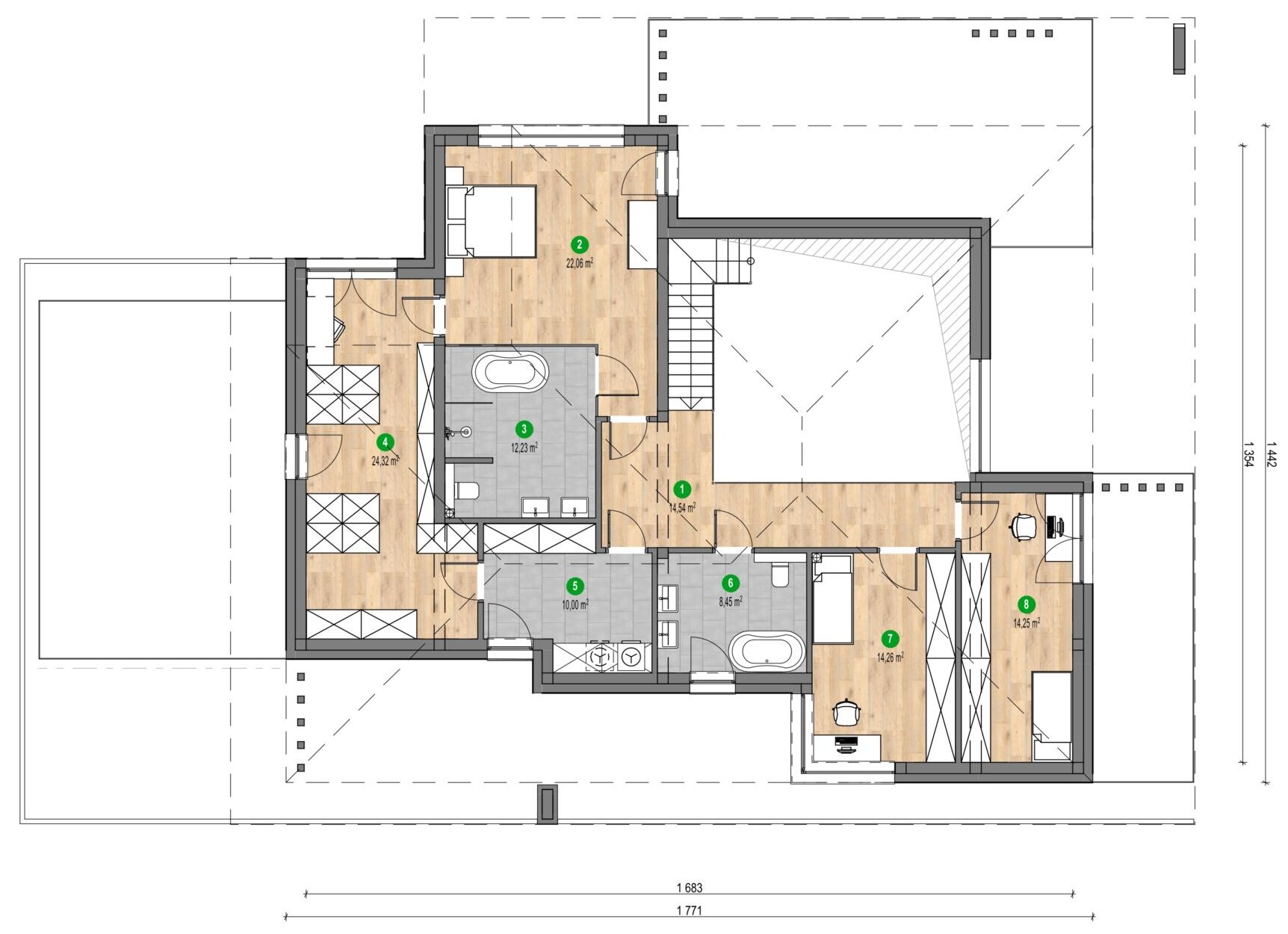 6. Bathroom: 8.45 m²